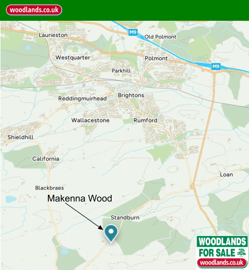 Gateside Woodland sits directly next to the small ex-mining village of Standburn, with the closest town being Falkirk about 6 miles away.
