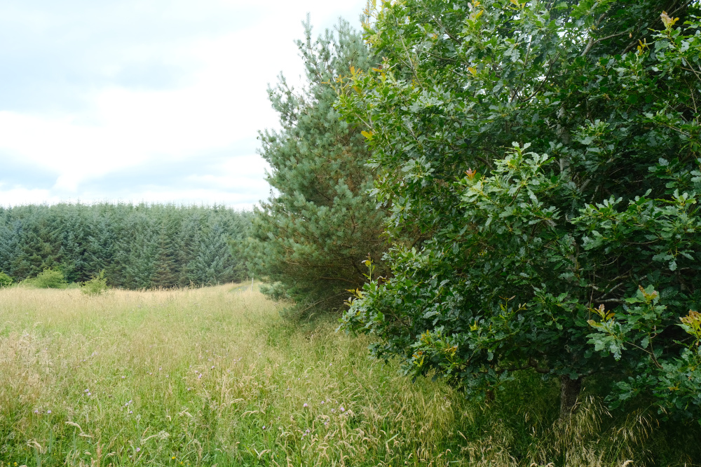 The trees have established themselves providing a good mix of conifer and deciduous, ideal for anyone wanting to get into crafting. The oak provides great potential for oak swill basketmaking as well as providing good timber for green wood working. There is a great balance to the woodland already and the potential for thinning would be a fantastic project for those with a practical mindset.