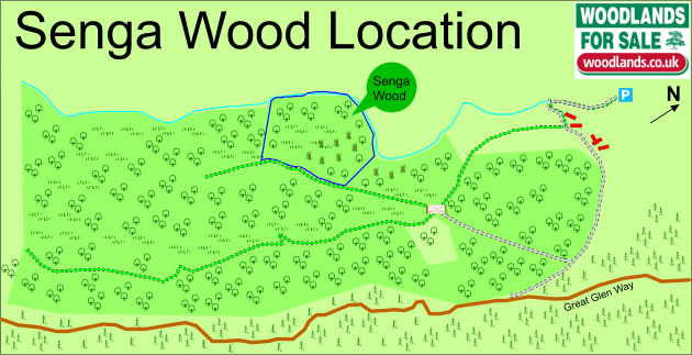 - At the end of the road there is parking for the Great Glen Way. Please park here and continue on foot. It will take about 25 minutes to walk from here along a good forest track.