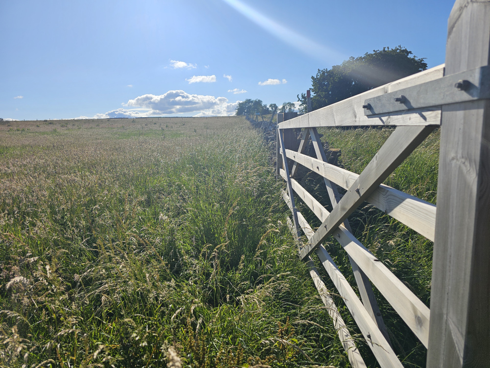 A newly installed timber gate provides secure and reliable access to the meadow