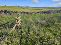 The land features a south-facing aspect with a gentle, consistent slope that ensures good natural drainage and sunlight. The perimeter is clearly defined and secure, bordered by aging dry-stone walls and new stock-proof fencing. Access is provided via a robust, firm track suitable for vehicle use, leading directly to a field gate going into the meadow. To preserve the character of the moorland, the meadow is protected by a covenant ensuring its continued use as a peaceful site for conservation and quiet enjoyment.