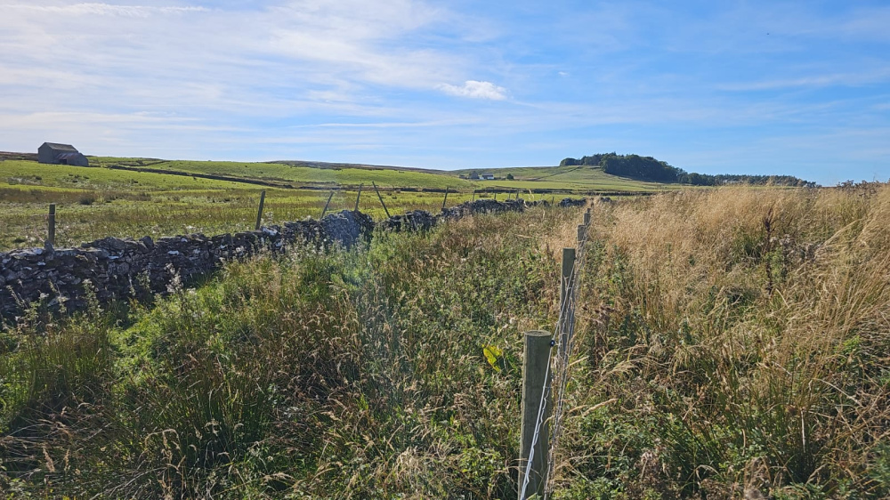 Stepping through the entrance, a green expanse of open land unfolds before you. To your left, the eastern boundary features a charming traditional dry-stone wall, complemented by a sturdy stock-proof fence. The southern boundary is again marked by a dry-stone wall, but there is a secondary stock-proof fence providing extra security to prevent livestock from falling into the small stream/sike. The area around the sike is teeming with wildlife, from vibrant plants to bustling insects and various animals and birds.