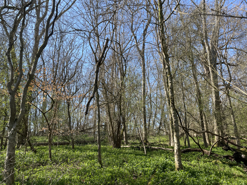Along with the open meadow, the land includes around 2 ½ acres of mature broadleaved woodland at the eastern edge. This woodland links up continuously with much larger blocks of woodland in the local area, including nature reserves, making it a wildlife corridor of significant importance – a space where arboreal and terrestrial mammals can navigate their territories without interruption. The woodland is abuzz with life and colour at Spring time, as the bluebells adorn the woodland floor and the blossoms explode into life. Along the boundary line of the meadow and the woodland extends an impressive wall of blackthorn, whose white flowers make a pleasing visual spectacle when looking east. Within the woodland, veteran trees including Chestnut, Cherry, Oak and Hornbeam stand tall amongst the coppice trees below. There is some windblown timber within the woodland, which could either left in place as deadwood (an important part of the woodland ecosystem) or harvested for firewood for those with the right chainsaw skills.