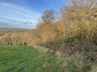 As one reaches the bottom of the open land there is a private internal track on the right hand side which runs alongside the belt of woodland at the northern edge of the parcel. The woodland shaw provides both habitats for a plethora of wildlife as well as a valuable seed source for the open land, aiding the process of natural regeneration. The woodland links up with other larger sections of woodland, thereby providing important corridors through which woodland mammals, such as badgers and deer, can traverse. The woodland itself is a mix of deciduous species, both standard and coppice.
