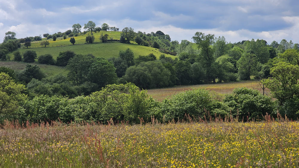 To find the meadow, head north from Lydham on the A489 for about 4 miles. Your sat nav may suggest a narrow, steep single-track lane marked with a blue "Unsuitable for HGVs" sign, it's best to avoid this turning. Instead, continue for another half mile and turn left at the sign for Hyssington and Old Churchstoke.