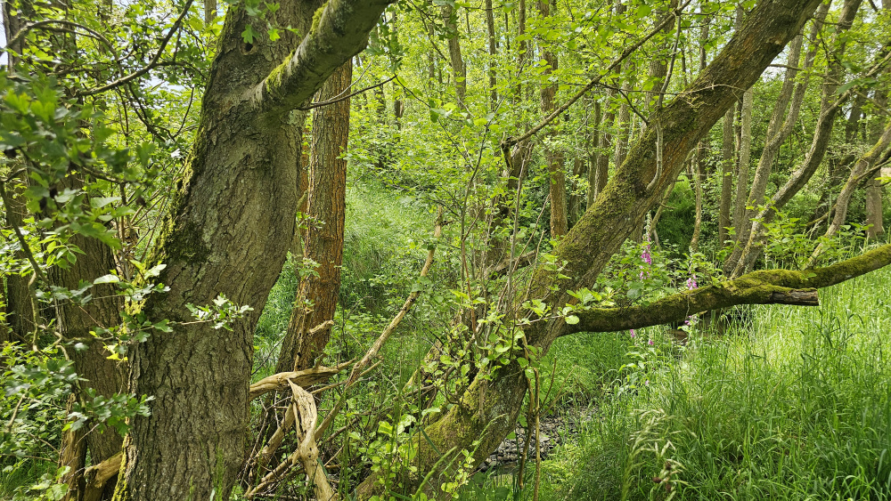 Mature trees and bushes providing protection from the elements whilst creating privacy