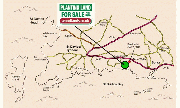 When heading along the A487 from Solva towards St Davids, look out for a turning on your left signed posted to ‘Trelerw’ and leave the main road here. There is also a “planting land for sale” sign on the verge next to the turning. This turning is located in between the hamlet of Nine Wells and the Texaco garage on the outskirts of St Davids. After turning, follow this smaller road for roughly 250m and the entrance gate will be on your left hand side, marked by another sign. Please park here and climb the gate. Looking slightly to your right and follow the access track which runs diagonally across a small field and then along the left hand side of a much larger field. Turn 90 degrees to your left at the bottom and follow the track for a further 200m, at which point Flint Meadow will be on your right hand side.