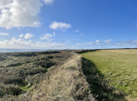 The meadow has had prior agricultural use and is currently down to grass, having been cut for hay in recent years. The location of the land so close to the sea provides a stunning setting, but its coastal location might be considered when selecting species of trees to plant on the land. The sizeable banks at the meadow’s edge do provide shelter from the elements, but certain species may fare better than others. With regards to a planting plan, one may wish to consider species including sycamore, juniper, hornbeam or hawthorn. These may be particularly well suited to the perimeter of the meadow, thereby creating a shelter belt which could shield other species further in, such as oaks, alders or pines.
