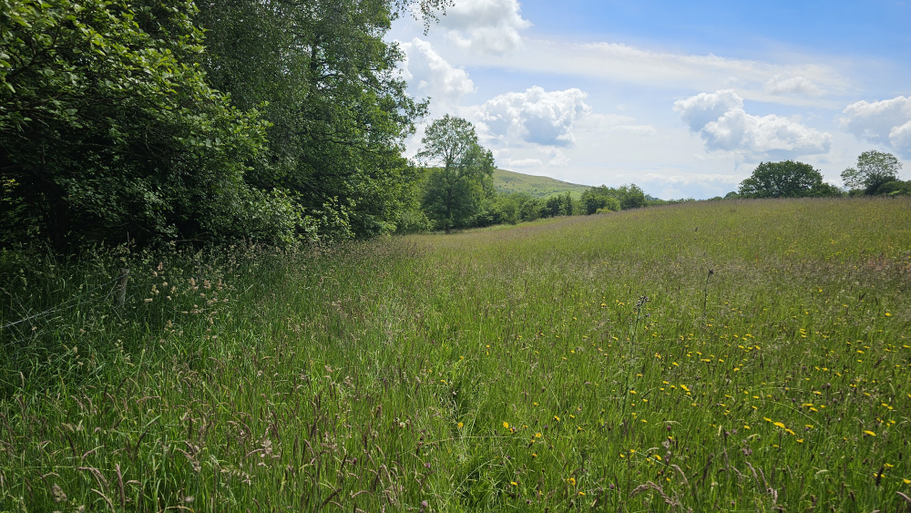 The meadow, nestled amidst serene surroundings, is gently undulating. Situated near to the border between England and Wales in Powys, this location offers captivating vistas of the Shropshire Hills to the east and Corndon Hill to the north west.