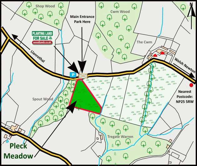 Pleck Meadow is conveniently accessed directly from an unnamed public highway which runs between the villages of Llanrothal and Welsh Newton (Herefordshire).