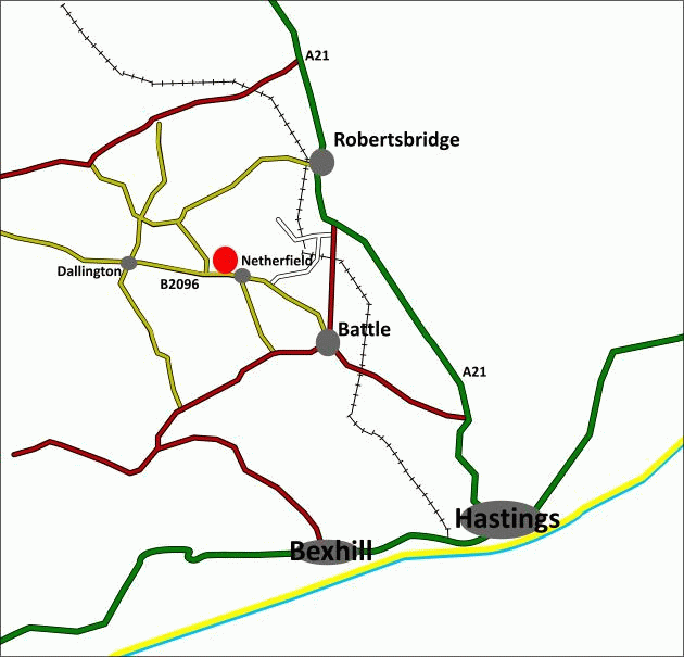 The Netherfield area was a very important region for the mining of iron ore and the production of iron from about 1600 to 1800. The local furnace, called Beech, was a source of the iron used in many of the cannons produced over this period. The charcoal produced from local wood was an important part of the iron smelting process. After your exploration of Bronhurst Wood you might like to visit The White Hart or call in at Netherfield Stores. The nearest railway station is at Battle - about 4½ miles away.