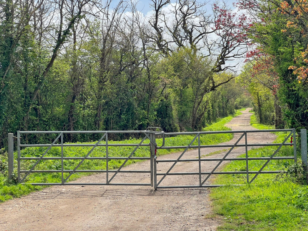 - Walk round the gate and down the byway approx. 280 meters and you will reach a single metal gate on the right-hand side of the track, again this has a small ‘Woodland For Sale’ sign on the gate.