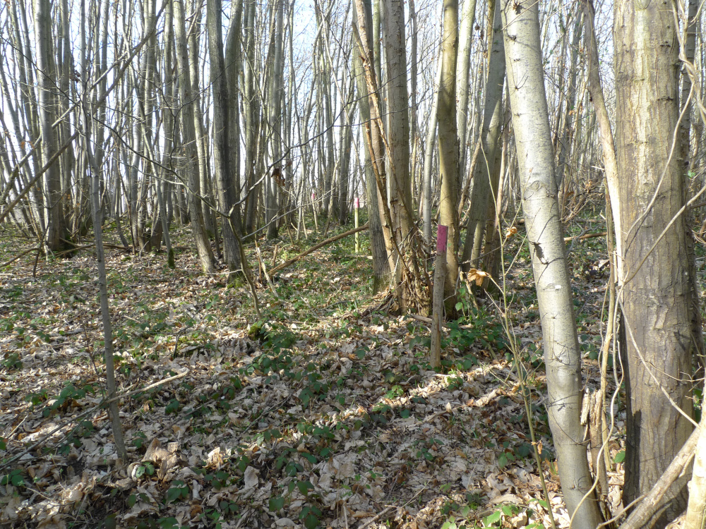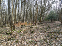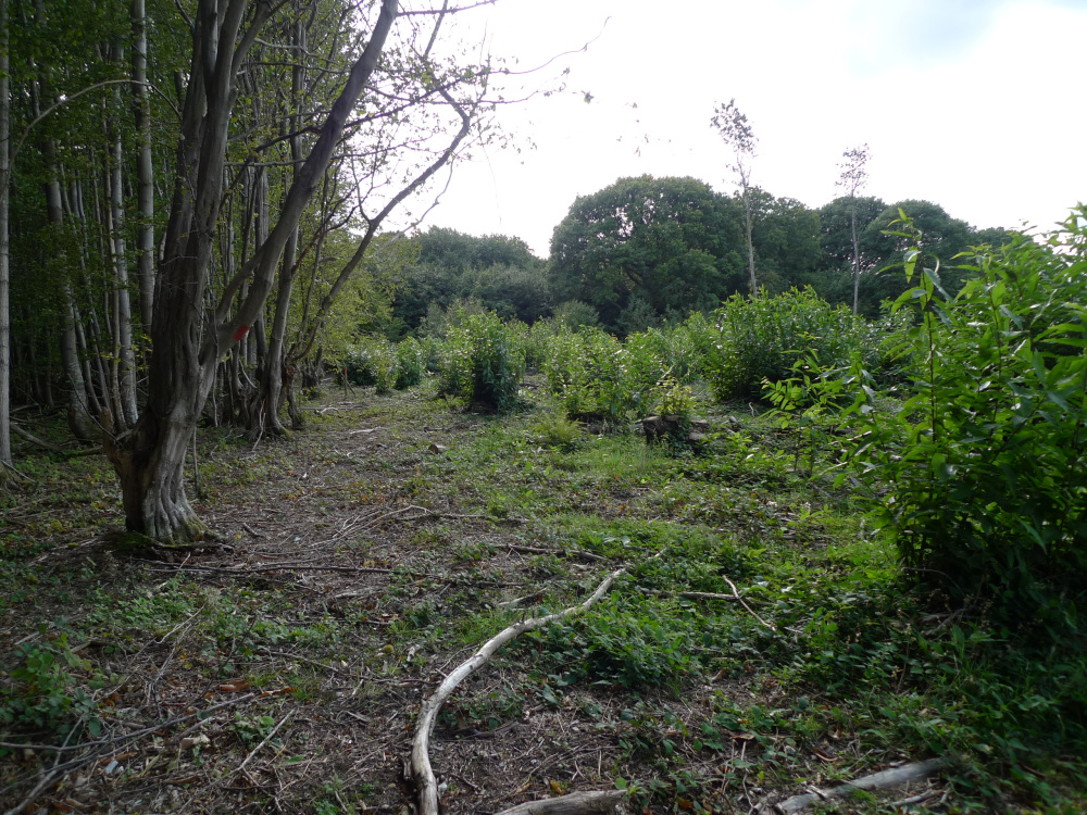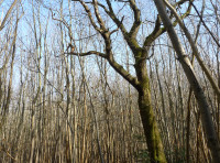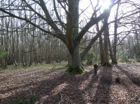 Sweet chestnut dominates but there are some mature oaks, some mature beech and large standard chestnut trees. Previously beech has been planted at the last coppicing of the chestnut but the young beech have been outgrown by the chestnut and would benefit greatly from small amount of halo felling to give them more light and the opportunity to grown on unhindered. It would be worthwhile identifying the best young beech trees. Young yews are spread thoughout the wood and if left will grow into large mature trees.
