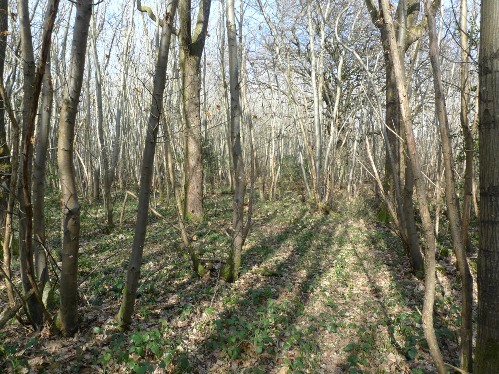 Around Canterbury, much of the land is covered by very extensive areas of woodland. Looking in a south-west direction down from high on Chartham Downs, you can see spread out below the huge forest areas including Denge, Pennypot, Eggringe, Capel and several other smaller woodlands - in total some eight square kilometres of semi-natural ancient woodland.