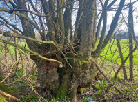 Highland Wood is a mixed age sweet chestnut coppice which will reach full maturity between 2028 and 2034. It could be harvested in a series of small blocks knows as ‘coupes’. Hazel, willow, birch and ash are found in the wood as well as some splendid mature oak standards. These single large-stemmed oaks would benefit from ‘halo thinning’- removing newer trees from around the mature tree so it is not out-competed by younger neighbours.