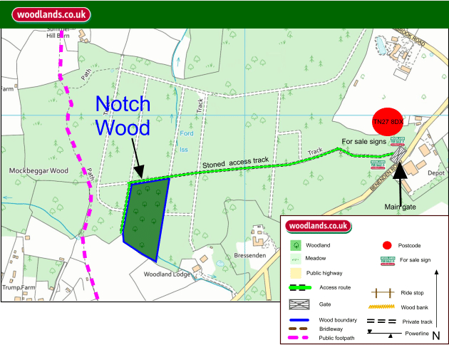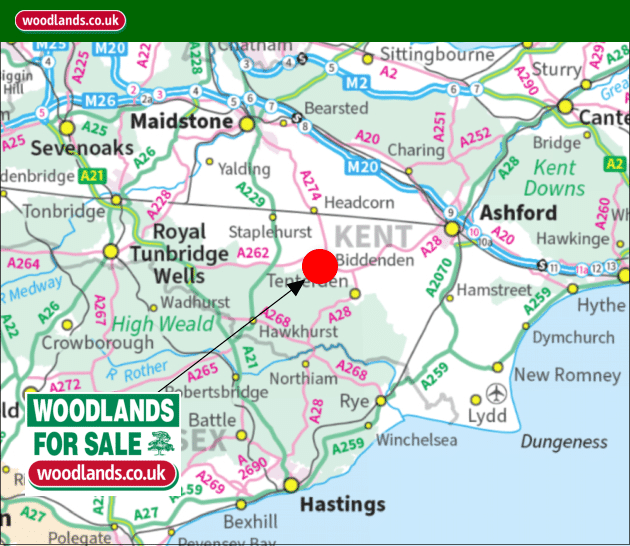 Notch Wood is situated approx. 3km south-west of Biddenden and 4km north-east of Benenden in the county of Kent. A private stoned track provides access to the wood. There is a place for a new owner to park within the wood itself.