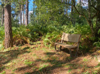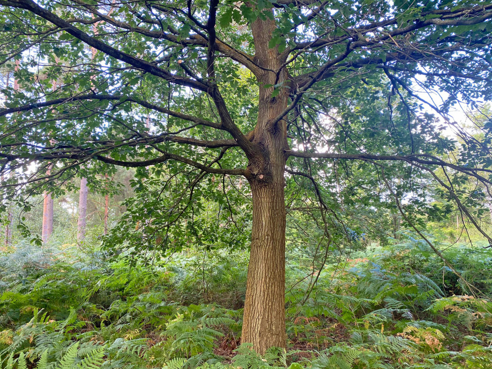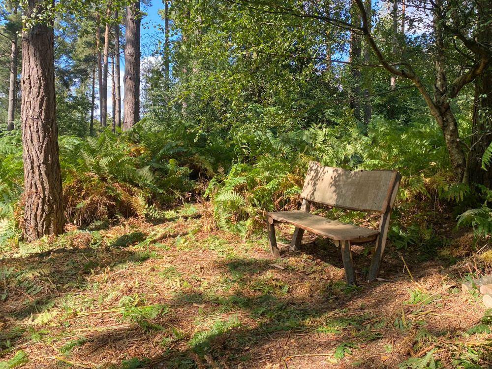 Notch Wood is a good-sized wood for those new to woodland ownership and management. Situated within a larger woodland it is extremely diverse, with tall pines, conifer, a young oak plantation and an area of established broadleaves (see ‘Trees’ below). With an open meadow to the south and a wayleave to the west, the wood benefits from lots of sunlight, which provides a haven for butterflies and insects in the open grassy areas. A rustic bench rests in a secluded clearing, offering a tranquil spot to pause, reflect, and take in the beauty of the surrounding woodland. There is an old woodbank found within the wood (an ancient woodland indicator).