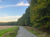- Walk through the trees on the stoned track approx. 100 meters out onto the open edge of the meadow. Follow the stoned track round to the right for approx. 330 meters and the ride stop entrance to Slipper Wood is on the right-hand side with its boundaries marked in BLUE.