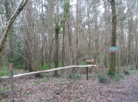 - pass to one side of the gate and walk down the track, Wyatt Wood is on the left identified by the orange markings.