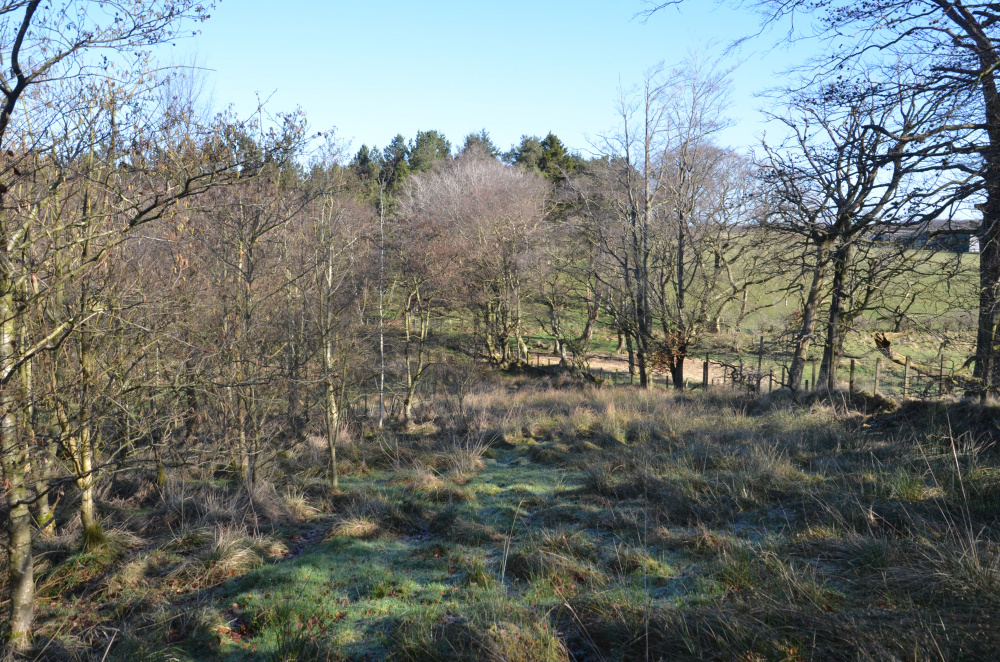 A small hardstanding is located behind the ridestop entrance with a rustic bench overlooking the landscape. A small watercourse with a wetland fringe is located before the northern boundary. This joins a free-flowing burn which is also fed from a drainage channel that runs atop a terrace in the western slope. A vital habitat for amphibians, these areas add interest and further variety to the overall woodland.