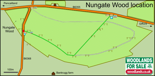 - Nungate Wood is about 25 miles east of Edinburgh and about 35 miles west of Berwick on Tweed.