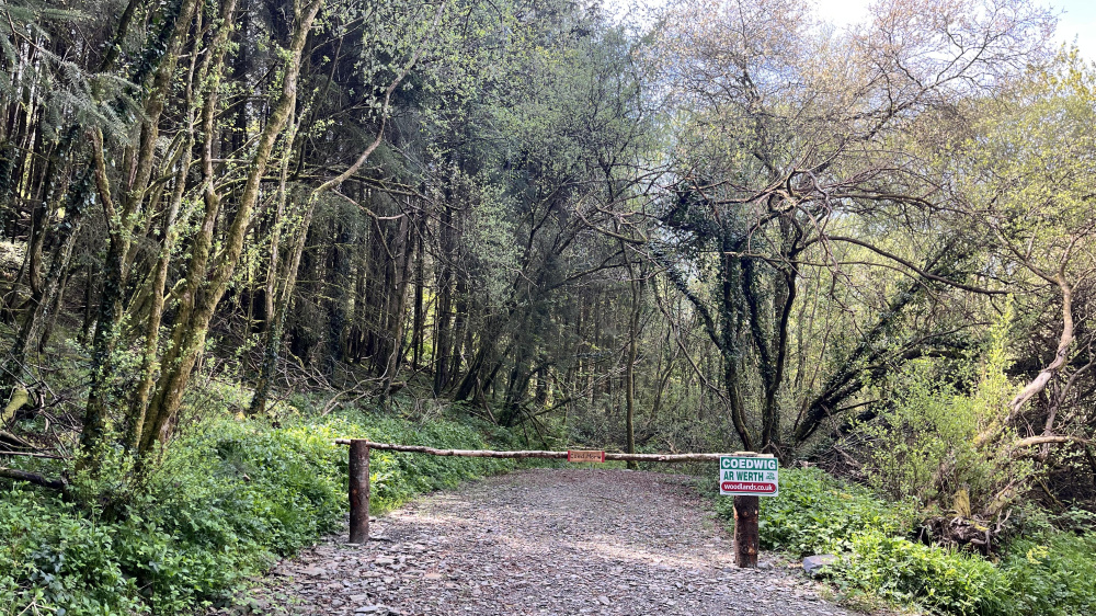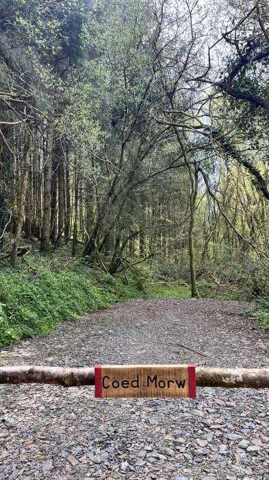 Follow the track through the woodland for approximately 200m until you see the entrance to Coed Morw on your left, marked by a ride stop with a wooden name board and a Woodlands for Sale sign.