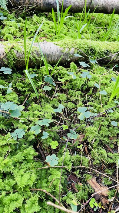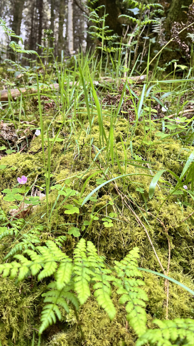 Forest floor : fern, bluebell, honeysuckle, celandine, herb robert and mosses