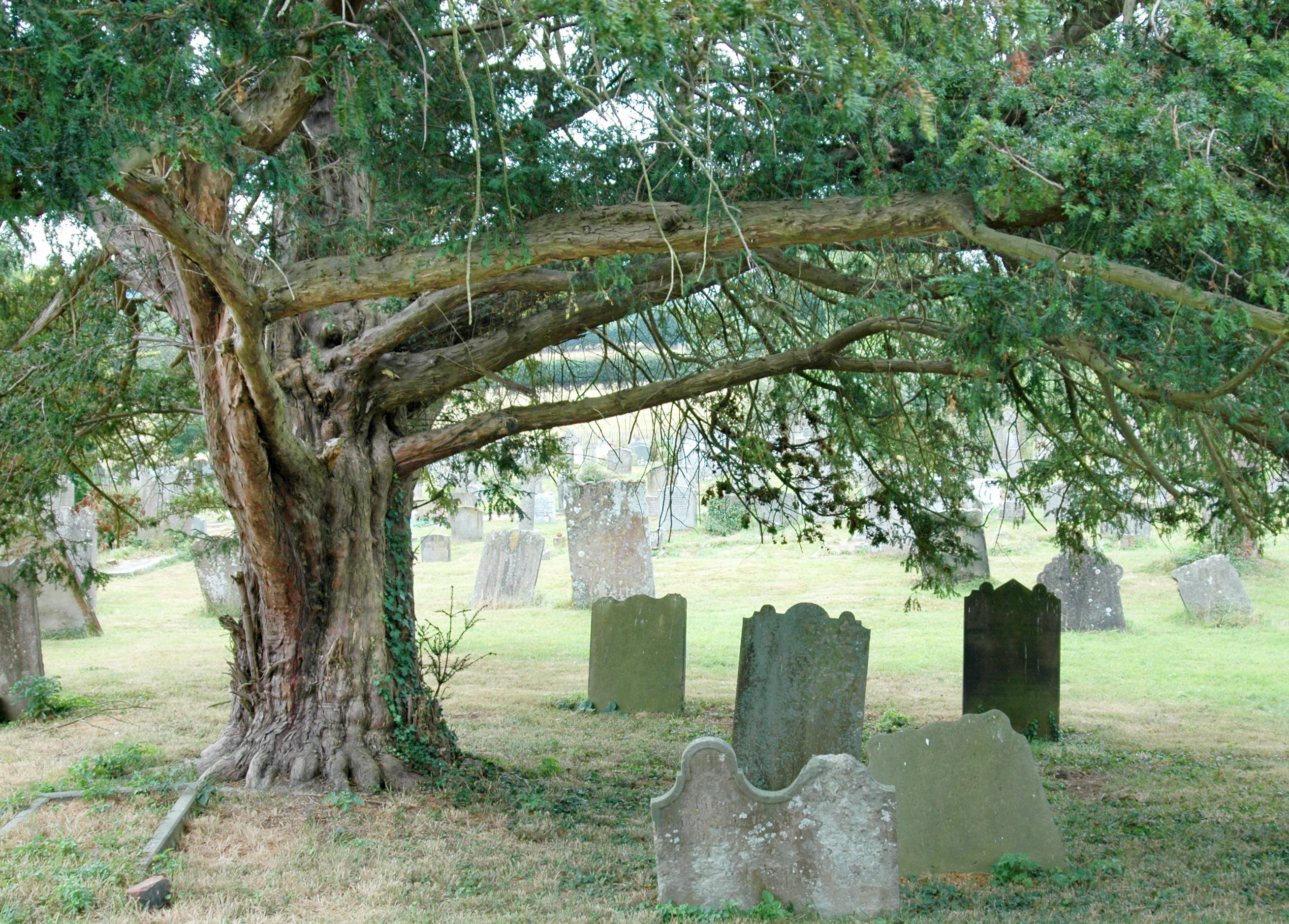 | photo, woodland, image, tree, trunk, bole, deciduous, yew, conifer, coniferous, cemetery, grave, woodlands.co.uk, |