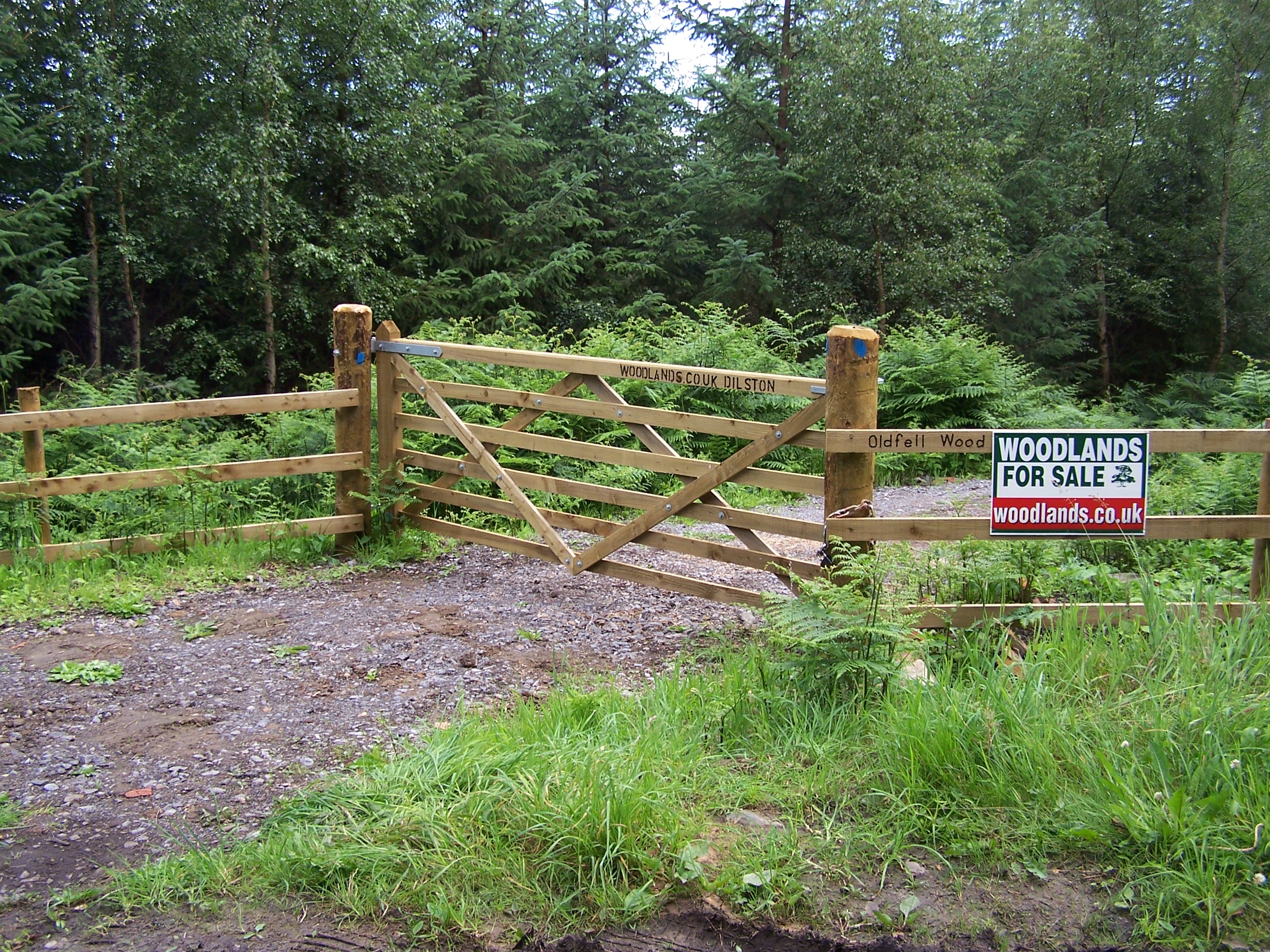 | photo, woodland, image, tree, grass, feature, road, gate, fence, signage, woodlands signage, sign, path, boundary, woodlands.co.uk, |