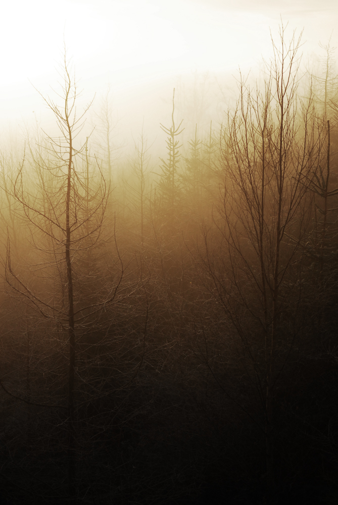 | photo, woodland, image, tree, silhouette, deciduous, mist, sunrise, morning, conifer, coniferous, larch, spruce, birch, woodlands.co.uk, |