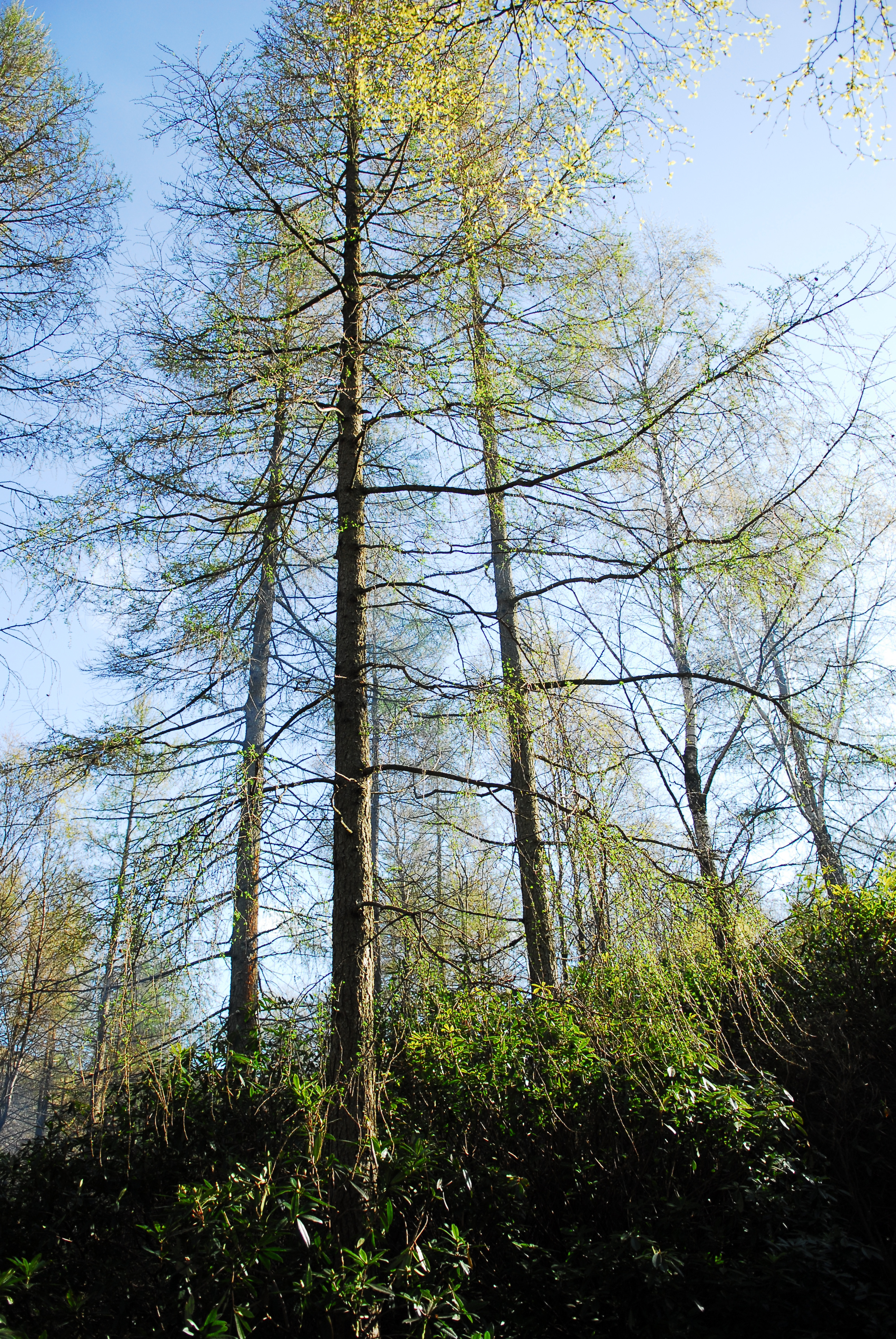 | photo, woodland, image, tree, branch, trunk, canopy, deciduous, conifer, coniferous, larch, spring, sky, european, woodlands.co.uk, |