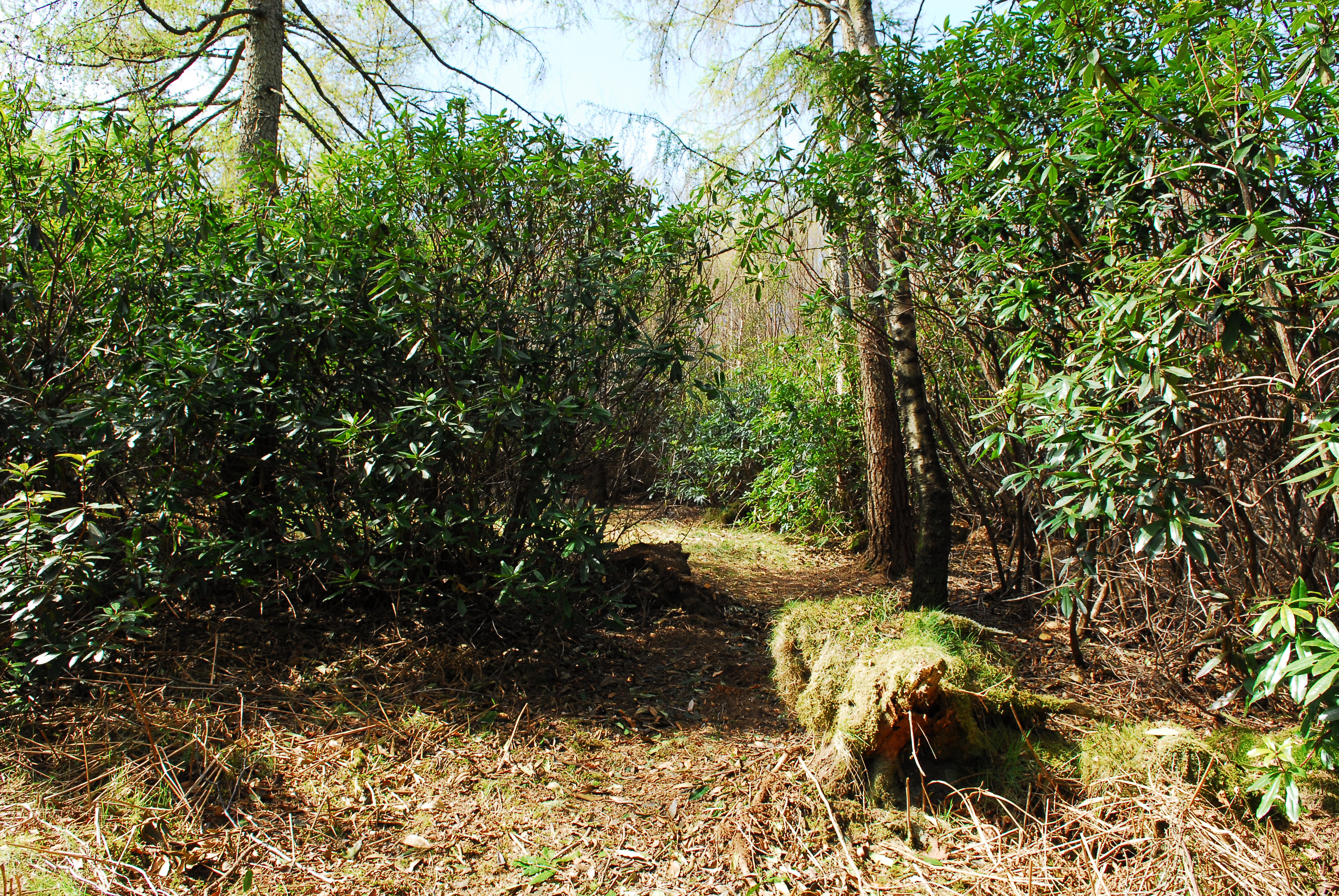 | photo, woodland, image, clearing, tree, moss, path, plant, glade, log, rhododendron, woodlands.co.uk, |