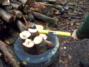 | wood, photo, photograph, woodland, image, craft, axe, picture, forest, woodlands.co.uk, logs, tyre, rubber, chop, |