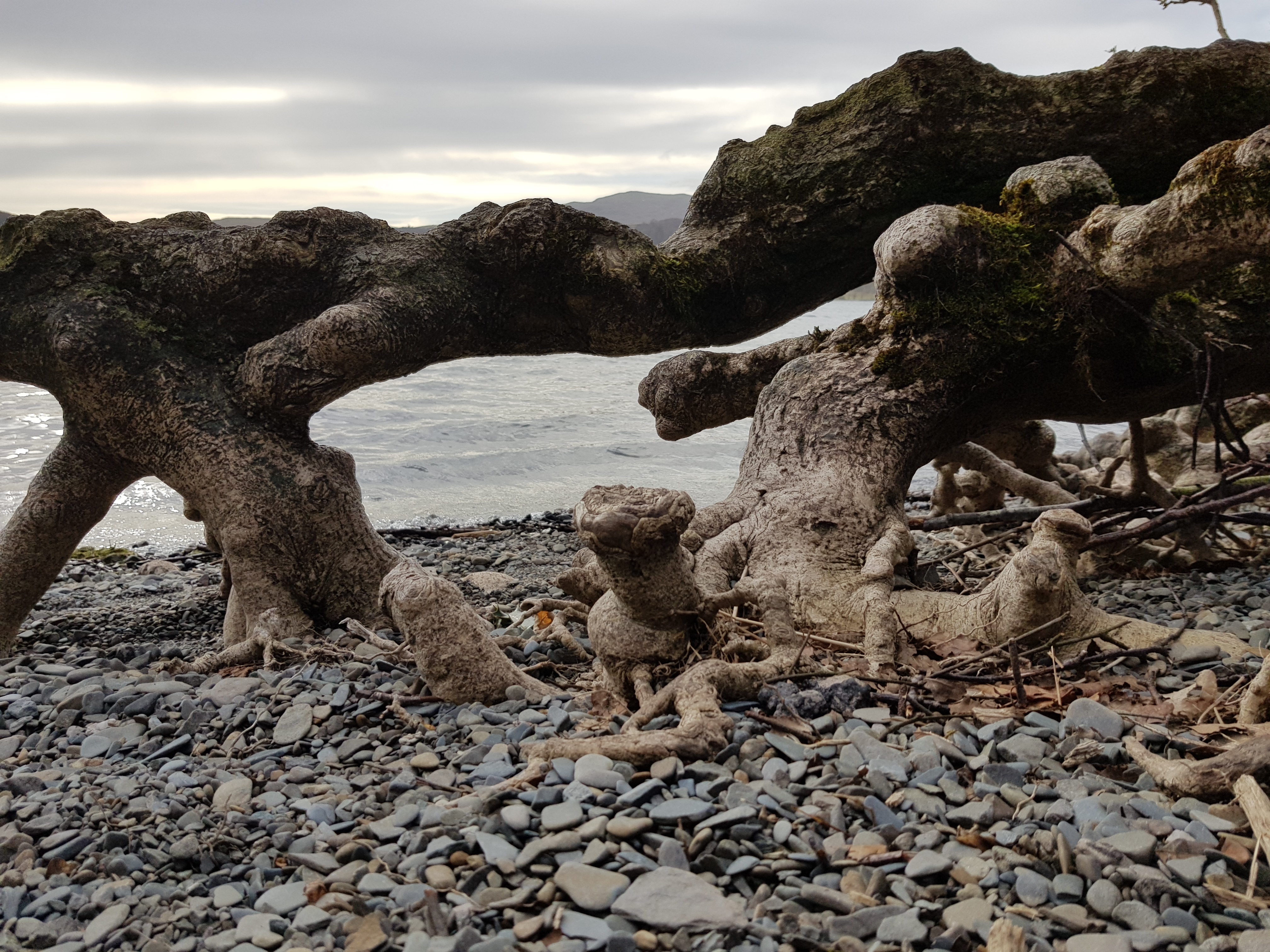 | Lake erosion exposing tree roots |