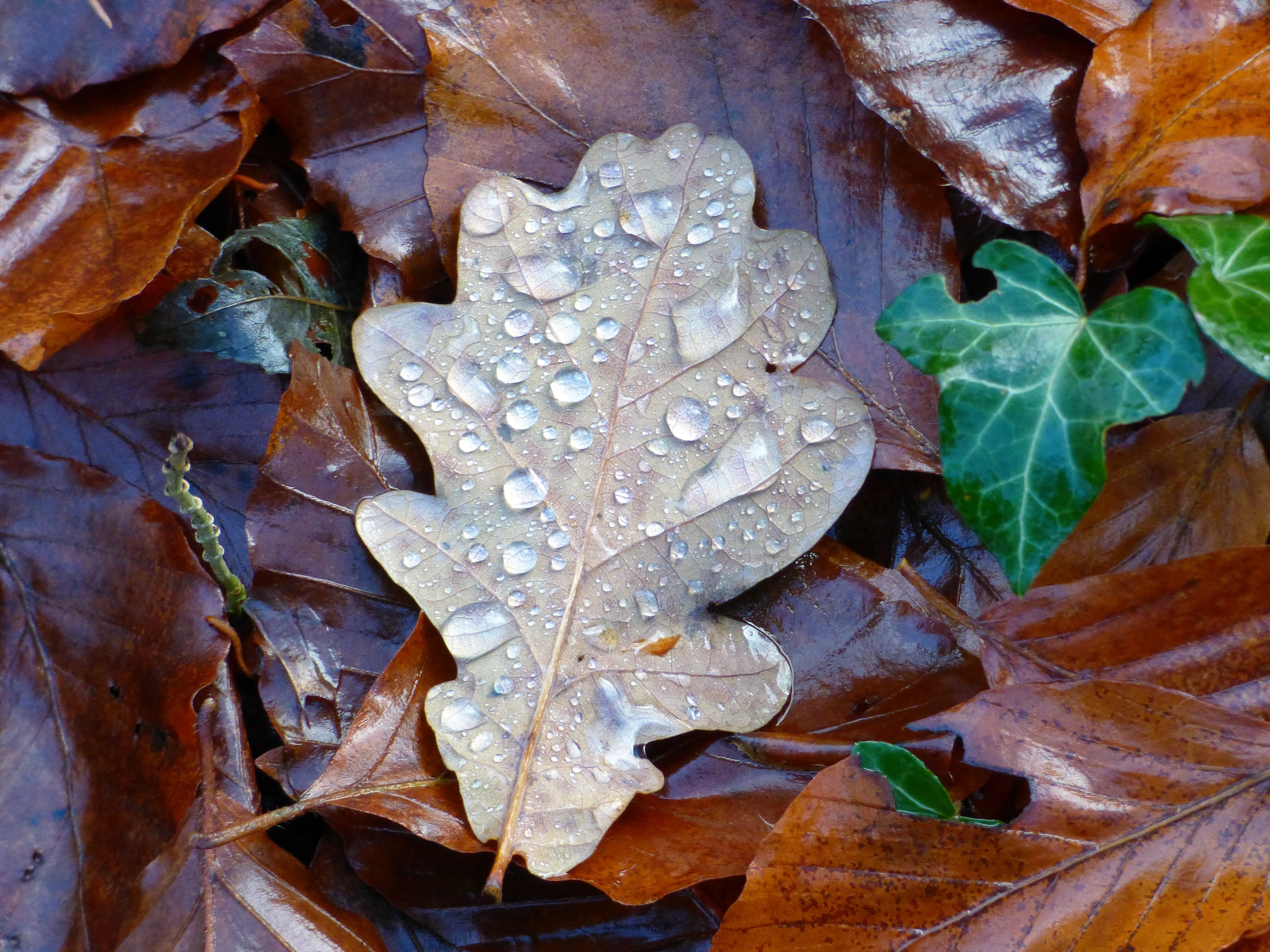 | oak, photo, photograph, woodland, image, leaf, water, rain, picture, forest, woodlands.co.uk, |